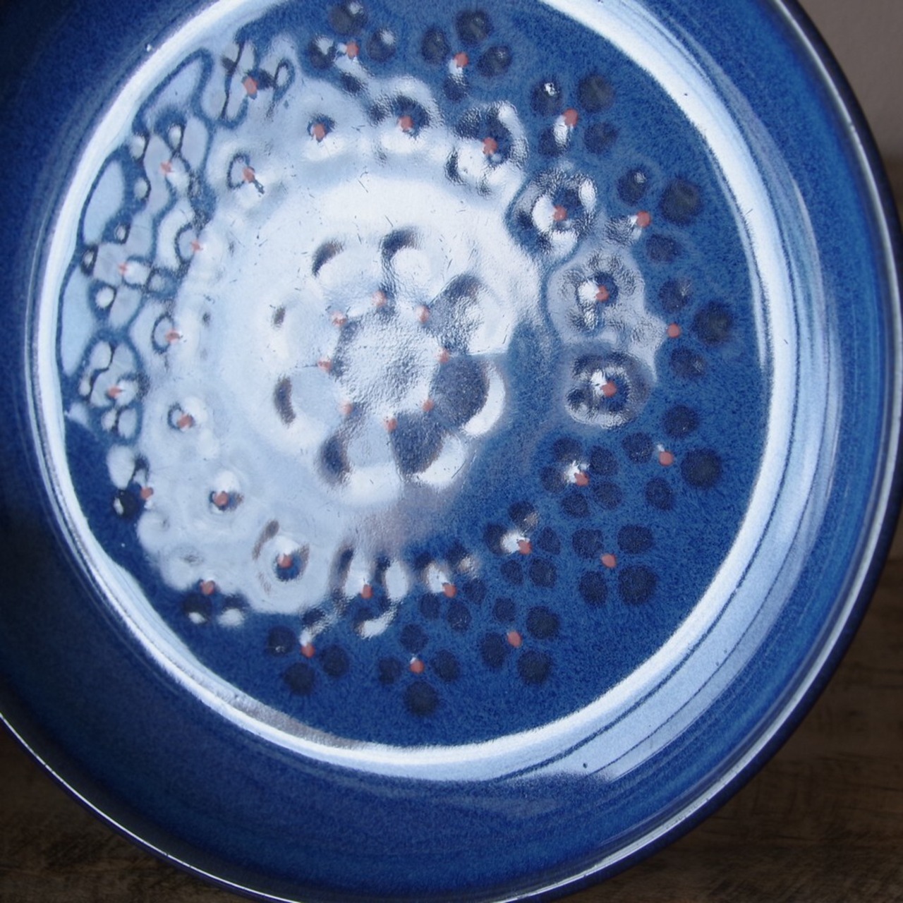 ラピスラズリのような深いブルーが印象的なプレートです。