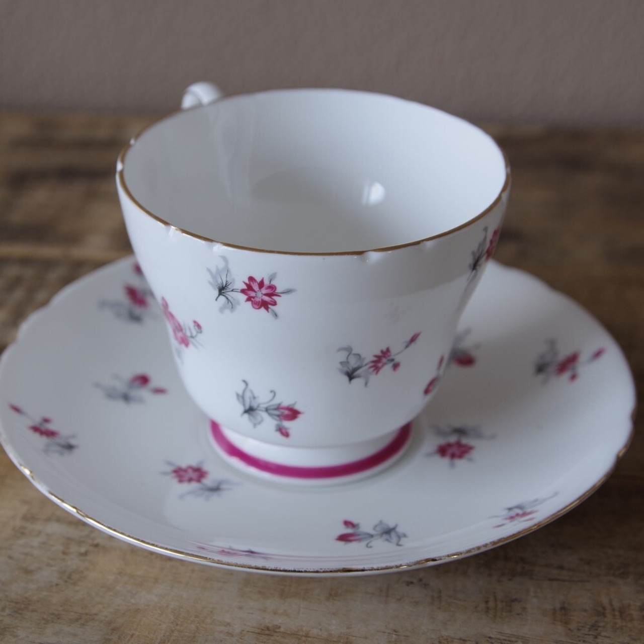 イギリスの陶器メーカー Shelley のカップ&ソーサーです。