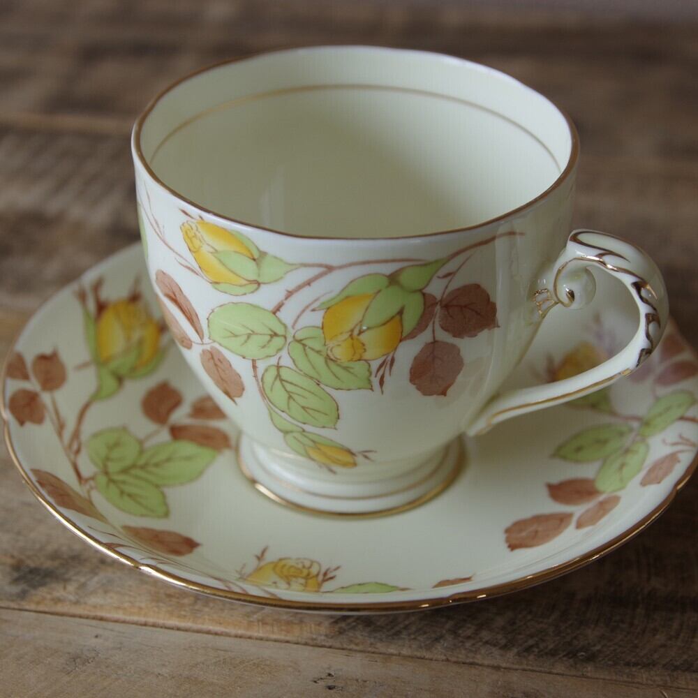 ロイヤルグラフトン ローズバッド 黄色 薔薇 花柄 コーヒーカップ ソーサー イギリス ヴィンテージ 食器 #200804-1~4 アンティーク 陶器 レトロ Royal Grafton Rose Bud
