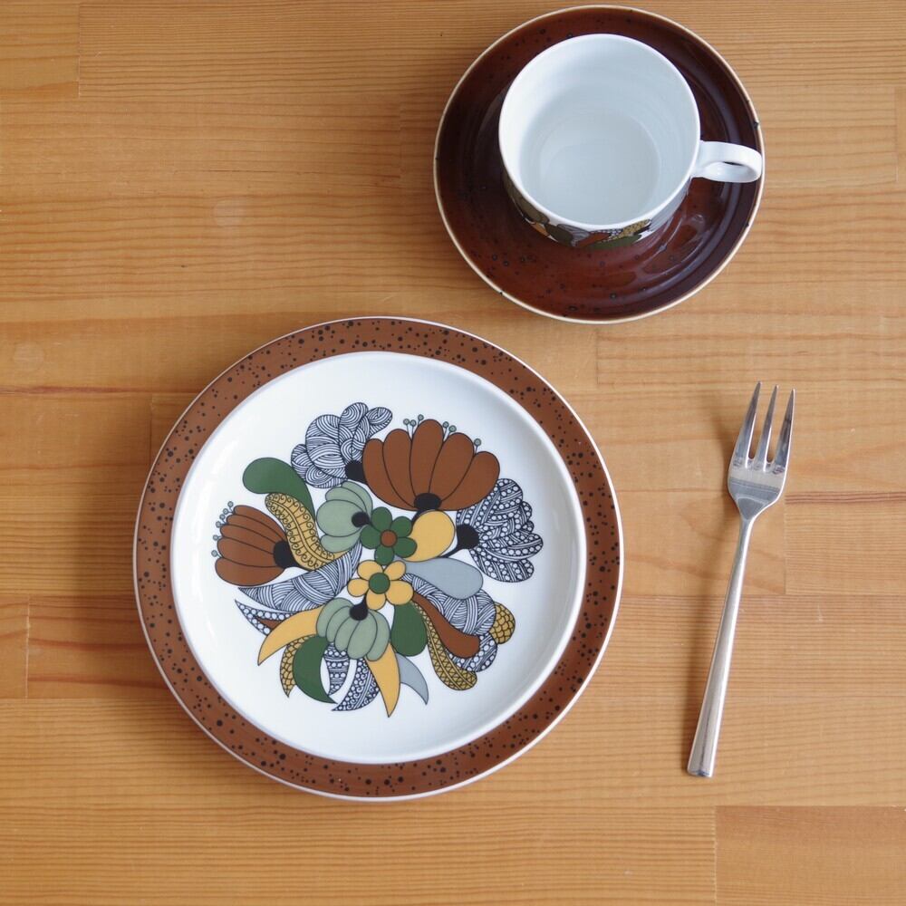 ドイツ ローゼンタール トーマス Thomas レトロ ボタニカル柄 花柄 デザートプレート ケーキ皿 20cm #200805-1~6 ヴィンテージ 食器 陶器 ブラウン Kiruna Carmaque 北欧デザイン