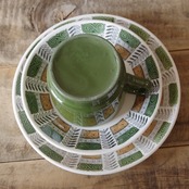 カップの側面は、渋いグリーン色に塗られており、内側の面は白です。