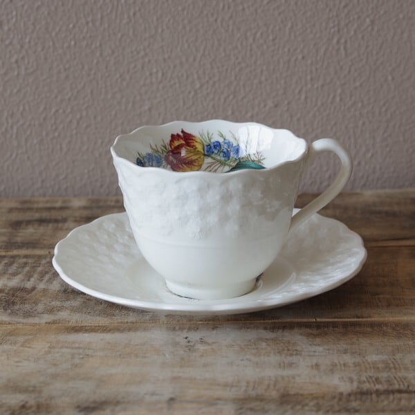 スポード コープランド ファンリー 花柄 コーヒーカップ ソーサー イギリス ヴィンテージ 食器 #200809-2 アンティーク 陶器 レリーフ チューリップ Spode Fernleigh