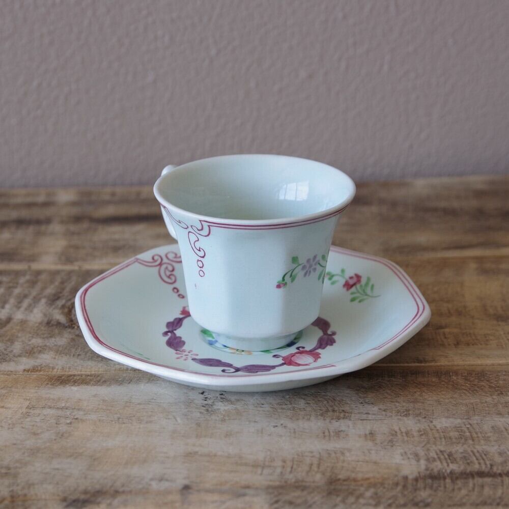アダムス カリックスウェア 水色 ピンク 花柄 デミタスカップ ソーサー #200810-1 Adams Calyx Ware レトロ ビンテージ 食器 陶器