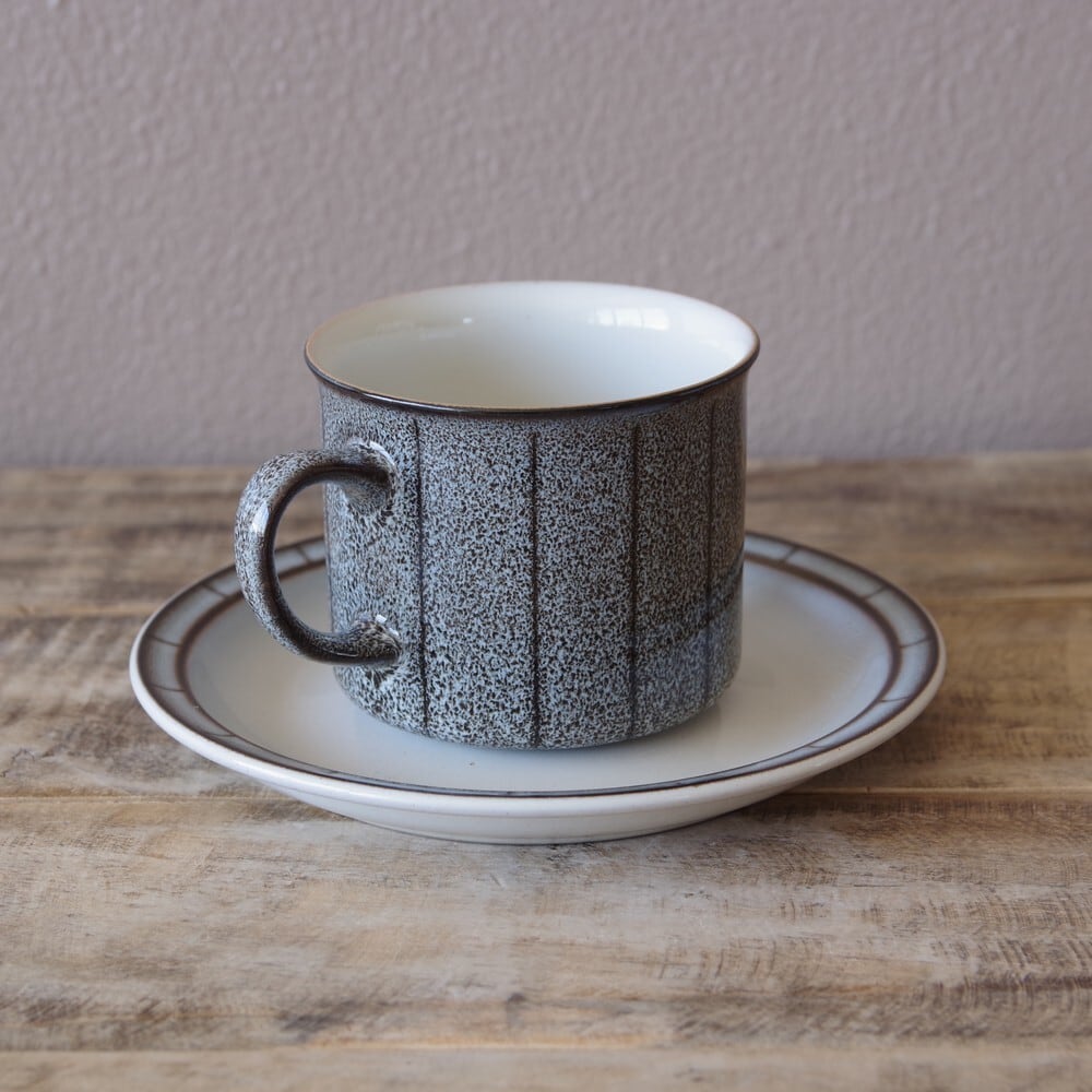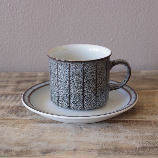 デンビー DENBY サターン Saturn グレー ストライプ コーヒーカップ ソーサー #200810-1~3 イギリス ビンテージ 食器 陶器 レトロモダン 渋め