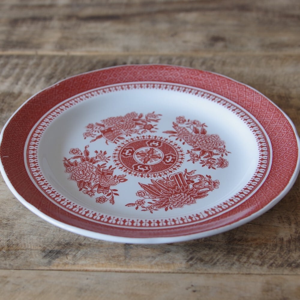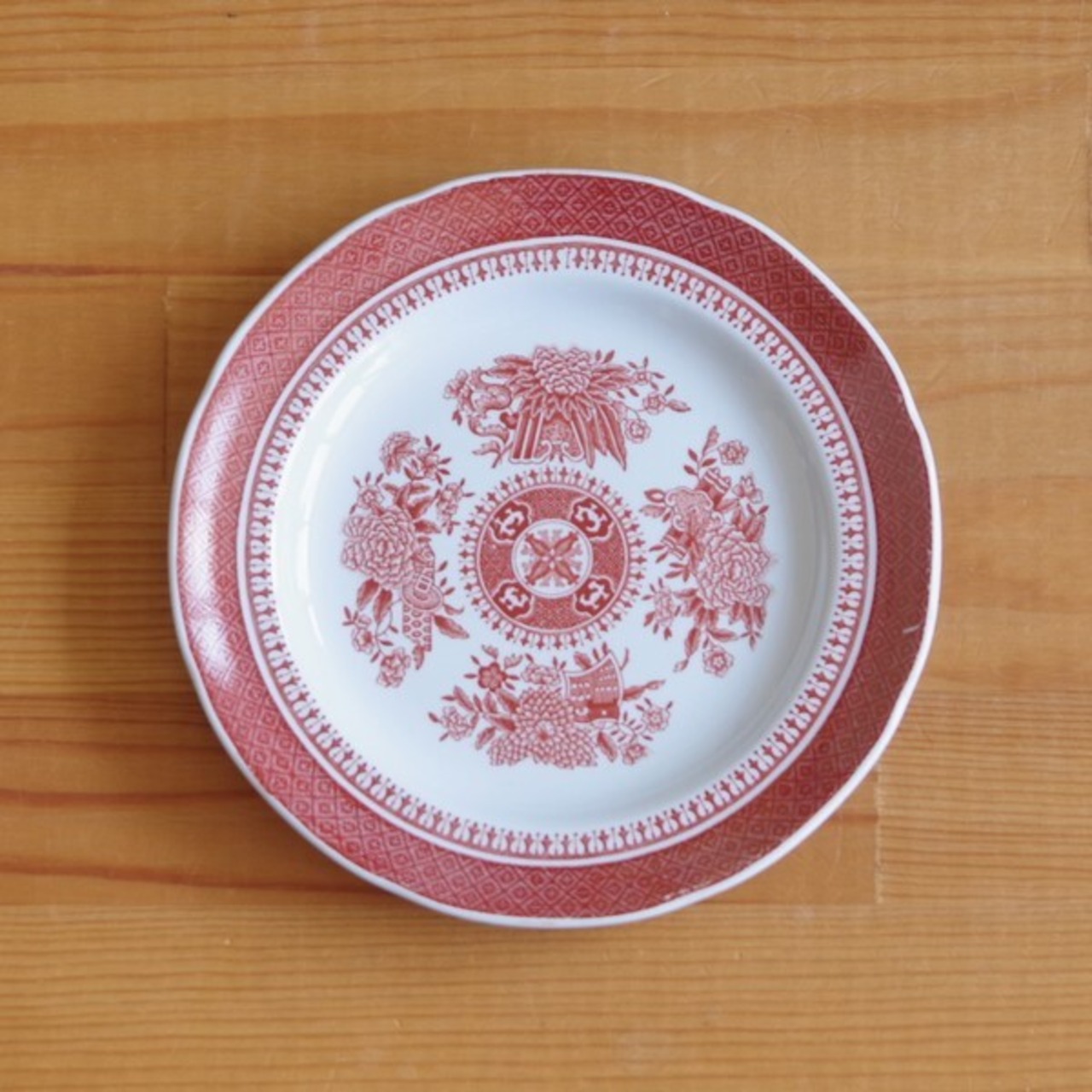 スポード フィッツヒュー 赤 デザートプレート ケーキ皿 15cm Spode Fitzhugh #200823-7 FINE STONE 花柄 レトロ ヴィンテージ グレー レッド パン皿