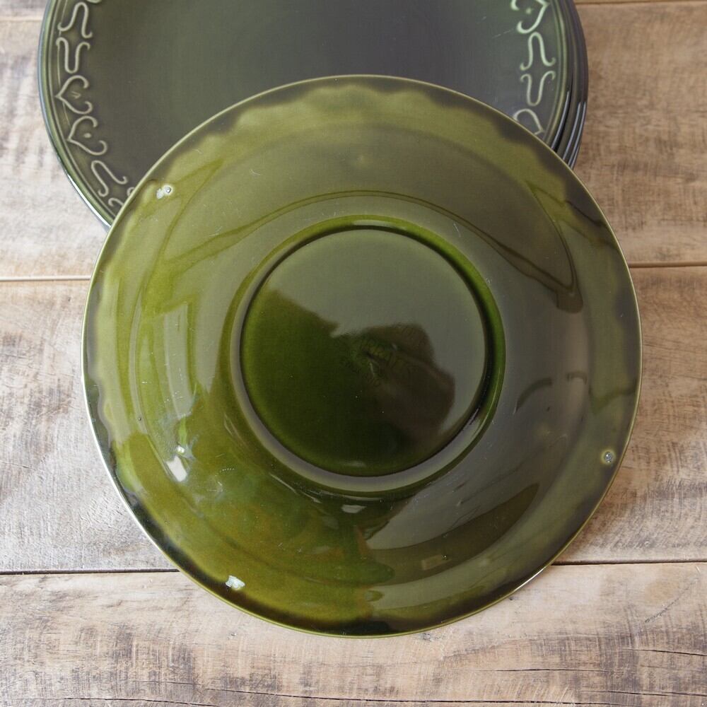 Barratts バラッツ Barbeque バーベキュー グリーン レトロモダン デザートプレート ケーキ皿 17cm #200823-1~6 イギリス ビンテージ 食器 陶器 レリーフ アンティーク 深緑