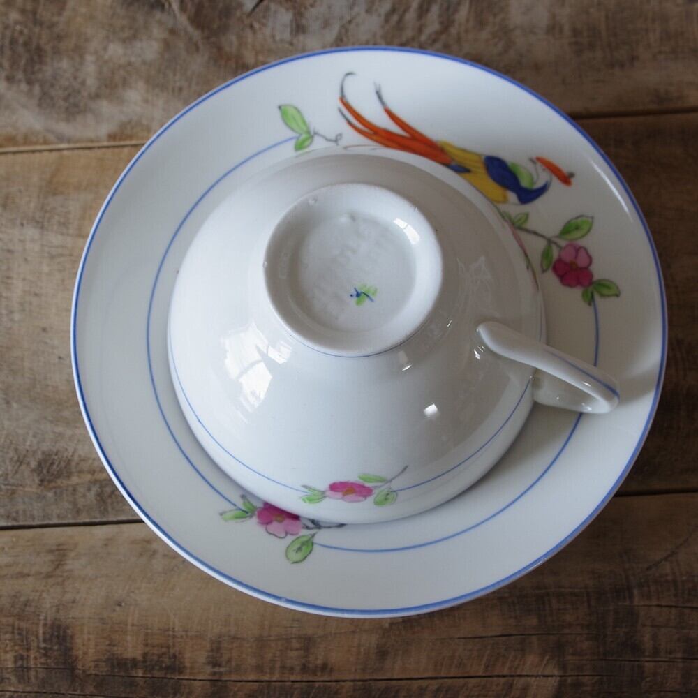 Grindley グリンドリー 鳥 ティーカップ ソーサー アンティーク 食器 #200828-1 イギリス製 ヴィンテージ 陶器 アールデコ レトロモダン