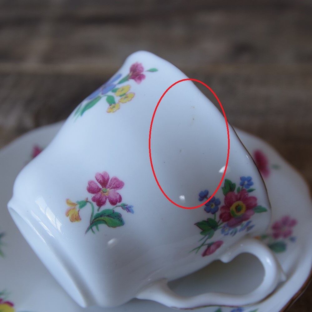 こちらのカップには、正面に近い箇所に茶色っぽい焦げたような痕がいくつかあります。