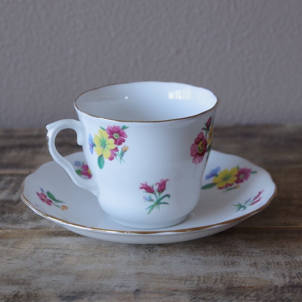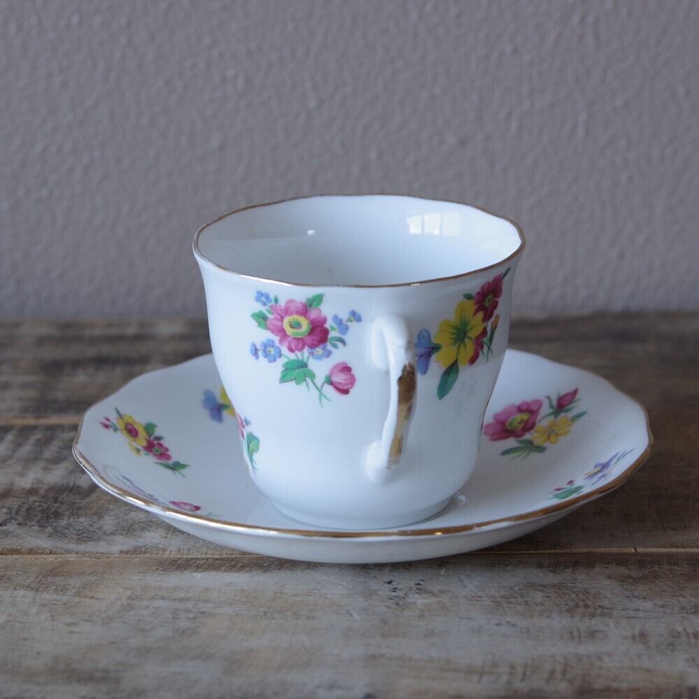 ロイヤルベール カラフル 花柄 コーヒーカップ ソーサー アンティーク 食器 #200828-2 イギリス製 ヴィンテージ 陶器 レトロ Royal Vale