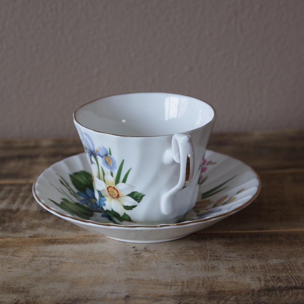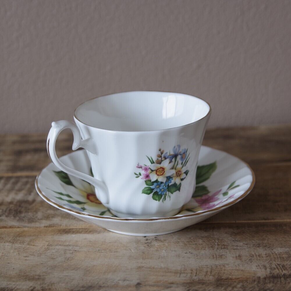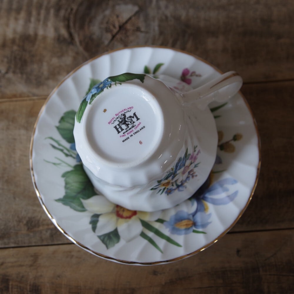 イギリス ヴィンテージ 食器 ロイヤルサザーランド スイセン 花柄 カップ ソーサー #200911-1 レトロ Royal Sutherland Fine Bone China アンティーク 陶器