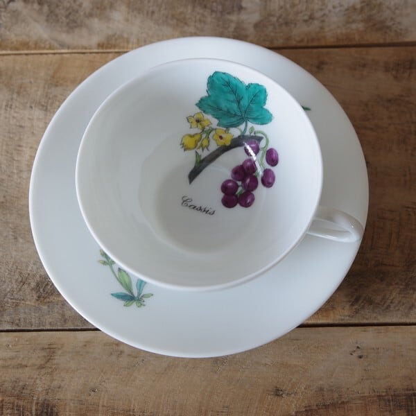 リモージュ Limoges N.B.D. Enlumine a la main カシス フルーツ柄 ティーカップ ソーサー ミニサイズ #200916-1 フランス製 アンティーク 食器 陶器 ヴィンテージ ボタニカル