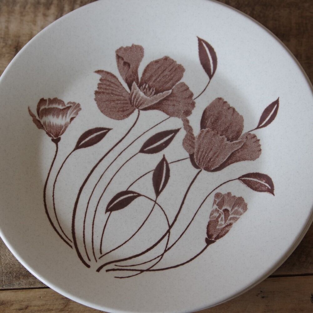 J&G MEAKIN ブラウン 花柄 デザートプレート ケーキ皿 18cm #200927-1~4 ミーキン レトロ アンティーク ひなげし イギリス製 ヴィンテージ食器 Maidstone Whispering