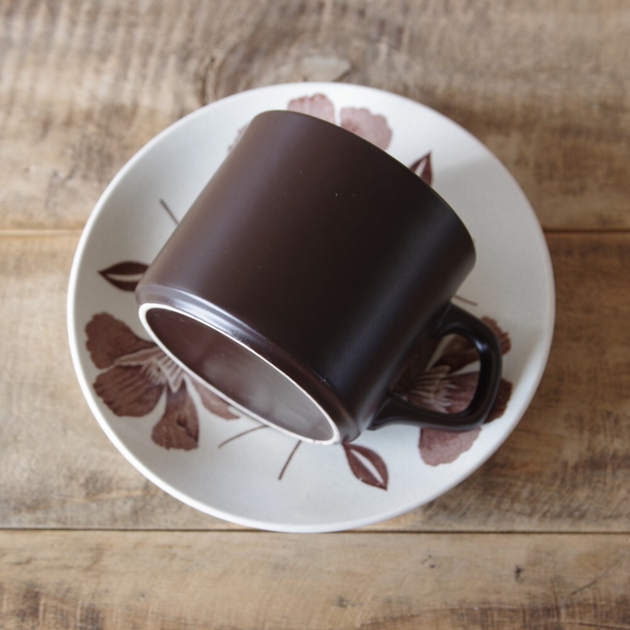 J&G MEAKIN ブラウン 花柄 コーヒーカップ&ソーサー #200927-1~4 イギリス製 ヴィンテージ食器 Maidstone Whispering ミーキン レトロ アンティーク ひなげし