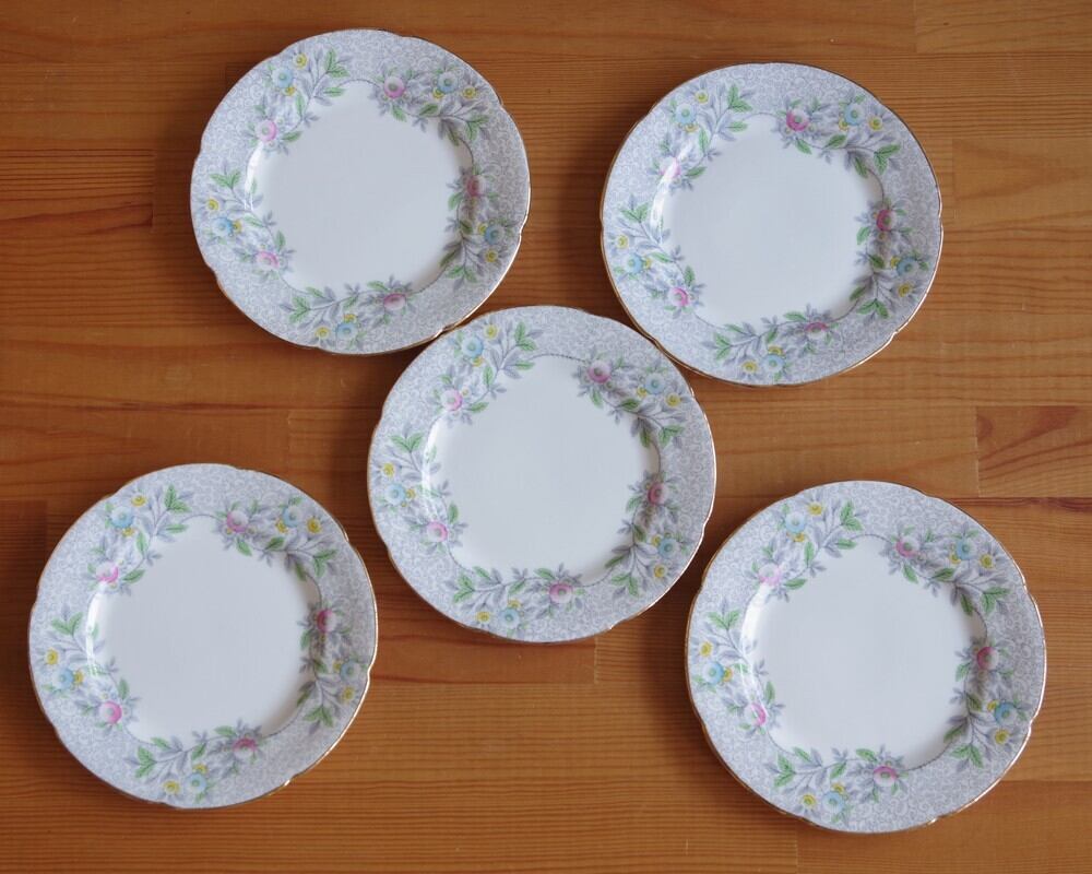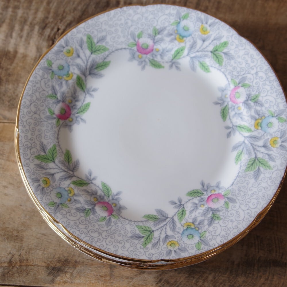 ロイヤルグラフトン グレー パステルカラー レトロ 花柄 デザートプレート ケーキ皿 16cm アールデコ #200930-1~5 イギリス アンティーク ヴィンテージ 食器 Royal Grafton