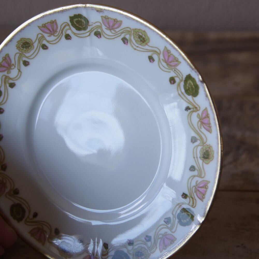 フランス アンティーク 食器 リモージュ エリート 蓮 ミニボウル ソーサー デザートボウル 小鉢 #201001-1~5 Limoges Elite 陶器 アールデコ 花柄 ボタニカル柄