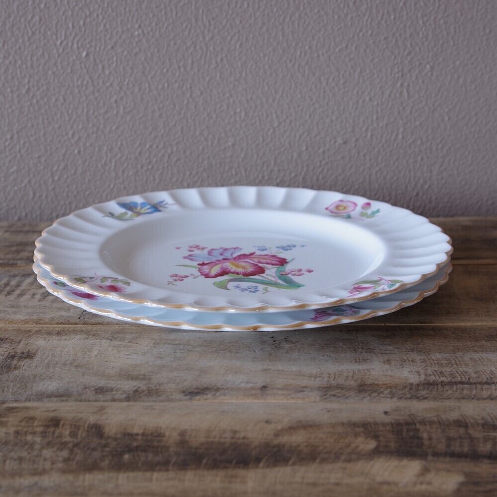 イギリス アンティーク 食器 スポード コープランド アイリス 花柄 デザートプレート ケーキ皿 23cm #201002-1,2 SPODE Iris ビンテージ 陶器 Copeland 手描き