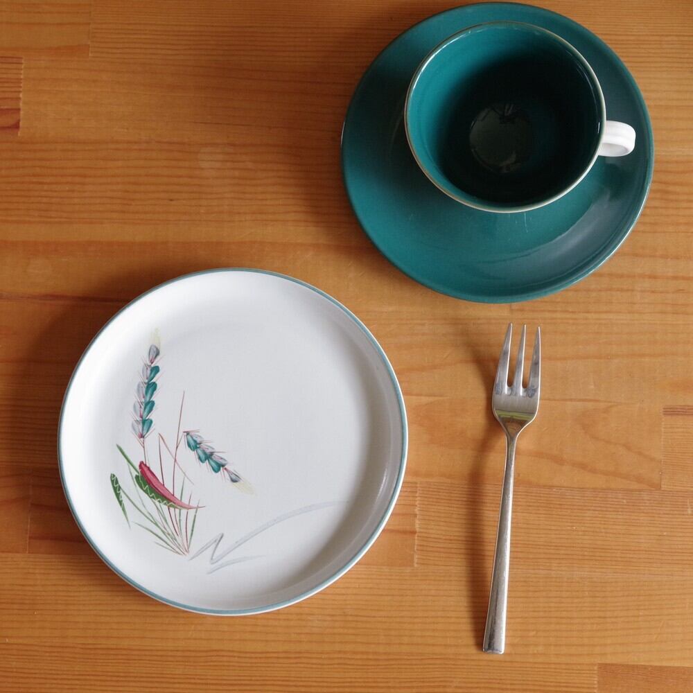 デンビー グリーンウィート デザートプレート ケーキ皿 グリーン 麦 ボタニカル柄 食器 陶器 #201003-1~3 DENBY Green Wheat 器 レトロモダン イギリス ビンテージ