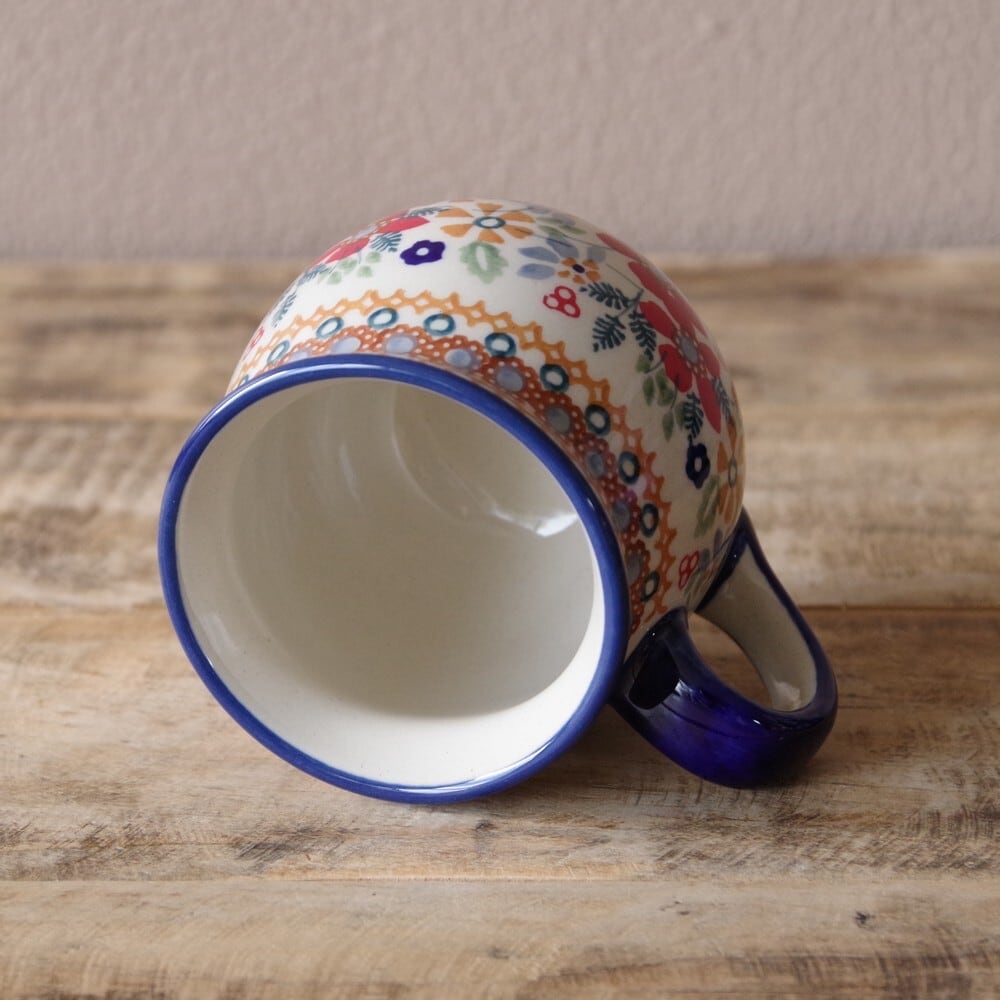【再入荷】【新品】 ポーリッシュポタリー ポーランド 食器 マグカップ 200ml 赤 ブラウン 花柄 レース K67-DPLC ボレスワヴィエツ 陶器 Boleslawiec 東欧 雑貨 ボタニカル