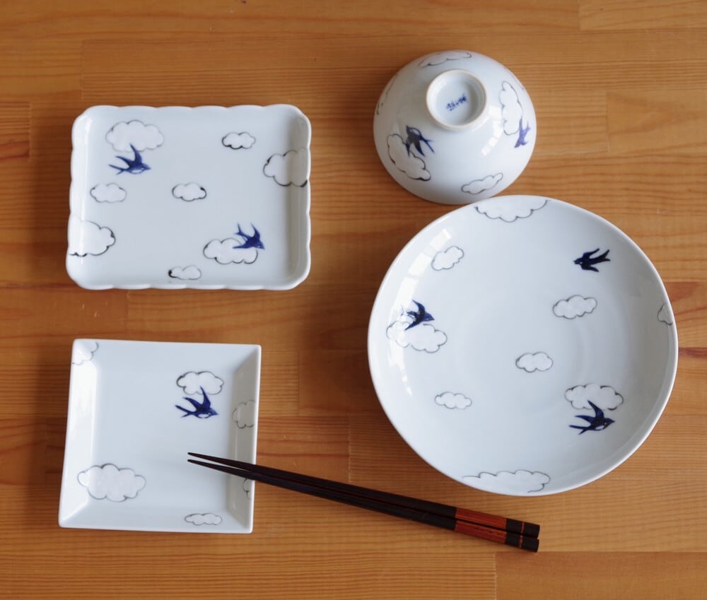 【再入荷】【新品】 有田焼 雲つばめ 飯碗 お茶碗 ライスボウル 10cm ポップでかわいいツバメ柄 鳥
