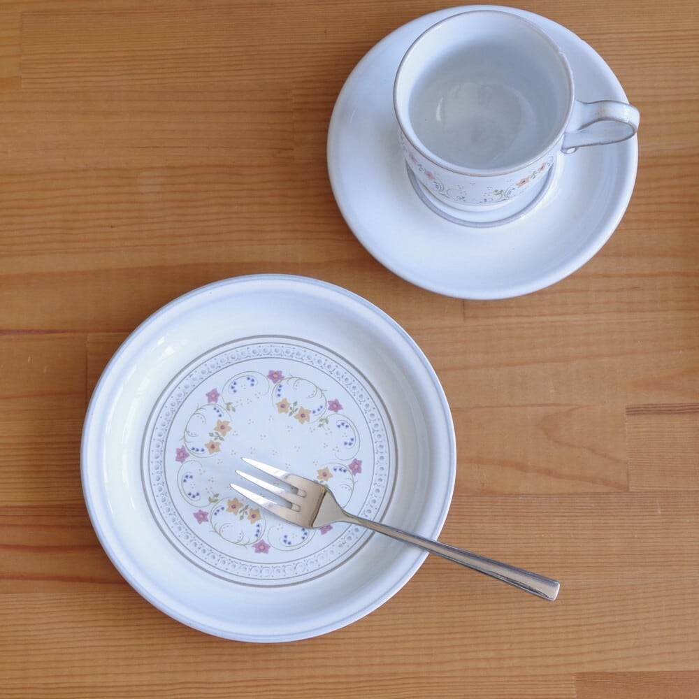 DENBY Avignon デンビー アヴィニョン デザートプレート ケーキ皿 18cm 花柄 #201020-1~6 イギリス ヴィンテージ 食器 陶器 白 レトロ フォークロア