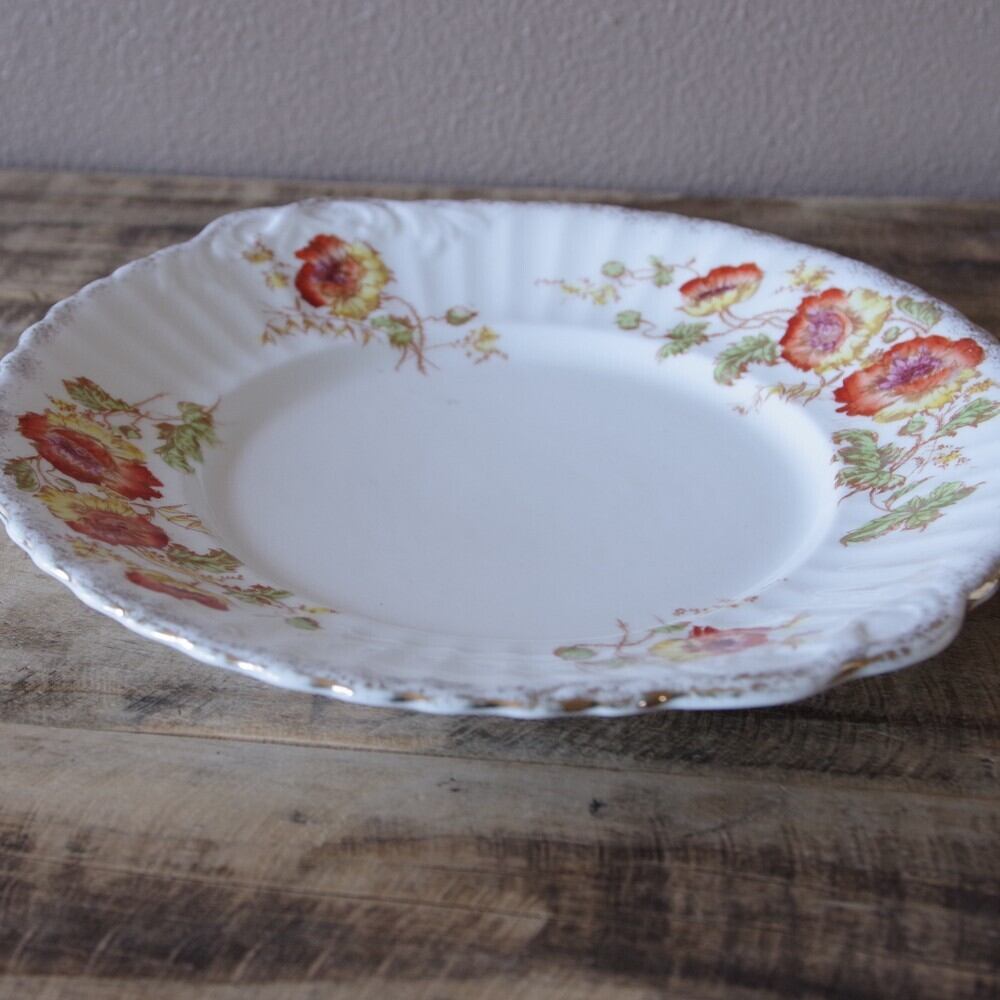 WH&S Poppy ひなげし 花柄 金彩 持ち手付き プレート 盛り皿 24cm #201020 イギリス アンティーク ヴィンテージ 食器 陶器 レトロ