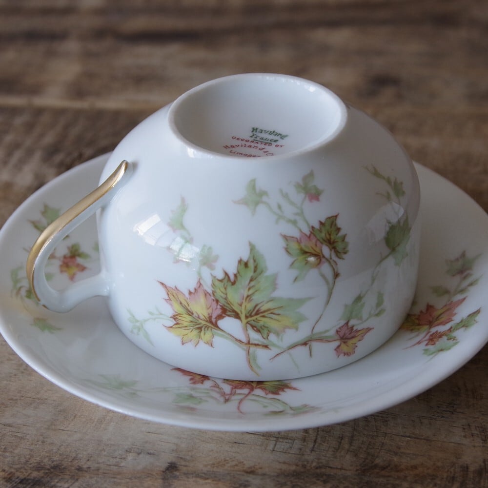 フランス アンティーク 食器 リモージュ アビランド 落ち葉柄 ティーカップ ソーサー 蔦 紅葉 陶器 #201031-2 Limoges Haviland France The Autumn Leaf