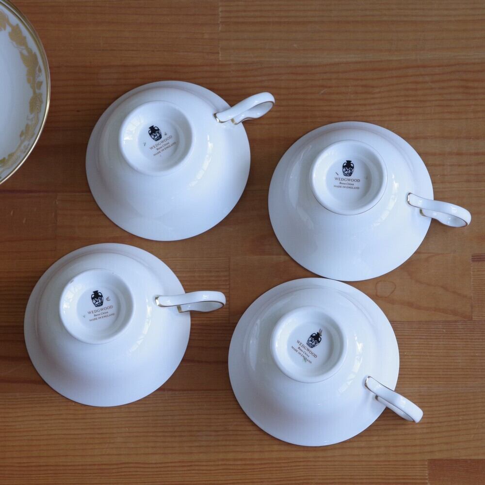 ウェッジウッド ホワイトホール ティーカップ ソーサー ゴールド 蔦 ヴィンテージ 食器 #201105-2~5 Wedgwood White Hall アンティーク 陶器 ぶどう