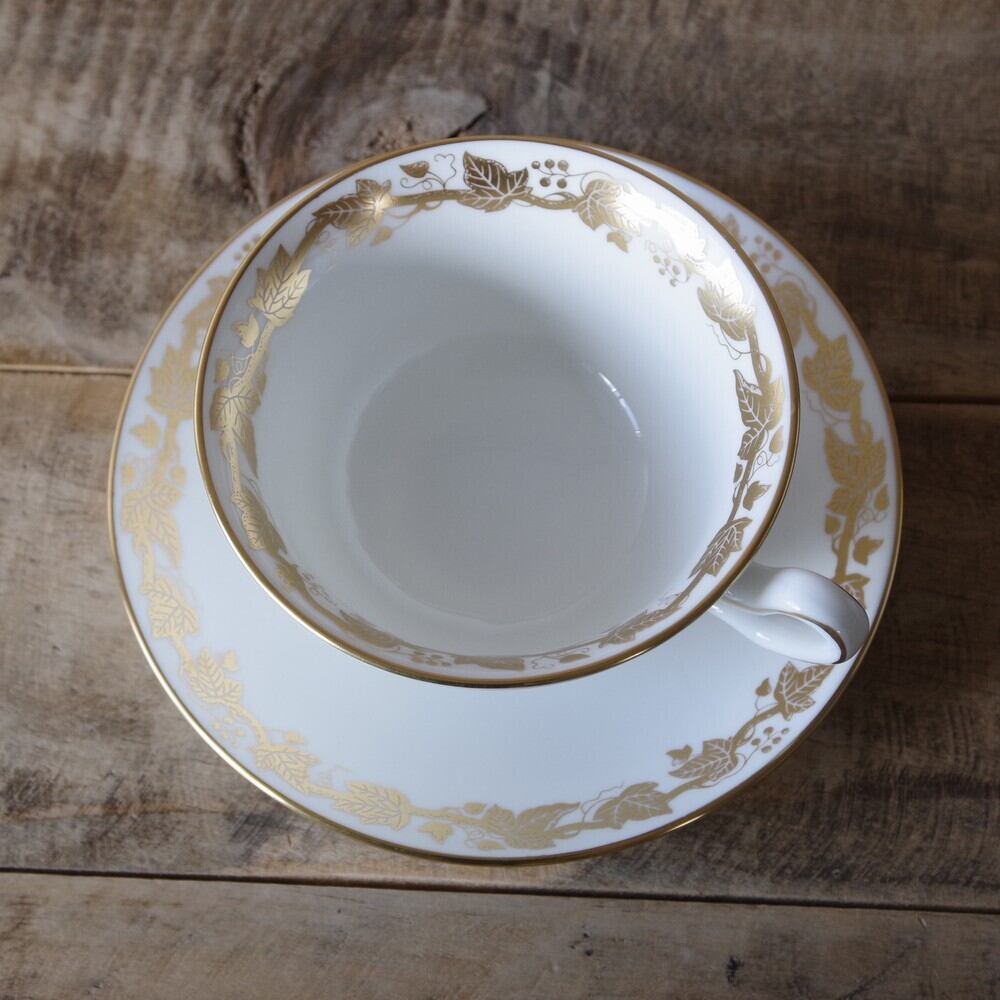 ウェッジウッド ホワイトホール ティーカップ ソーサー ゴールド 蔦 ヴィンテージ 食器 #201105-6 Wedgwood White Hall アンティーク 陶器 ぶどう