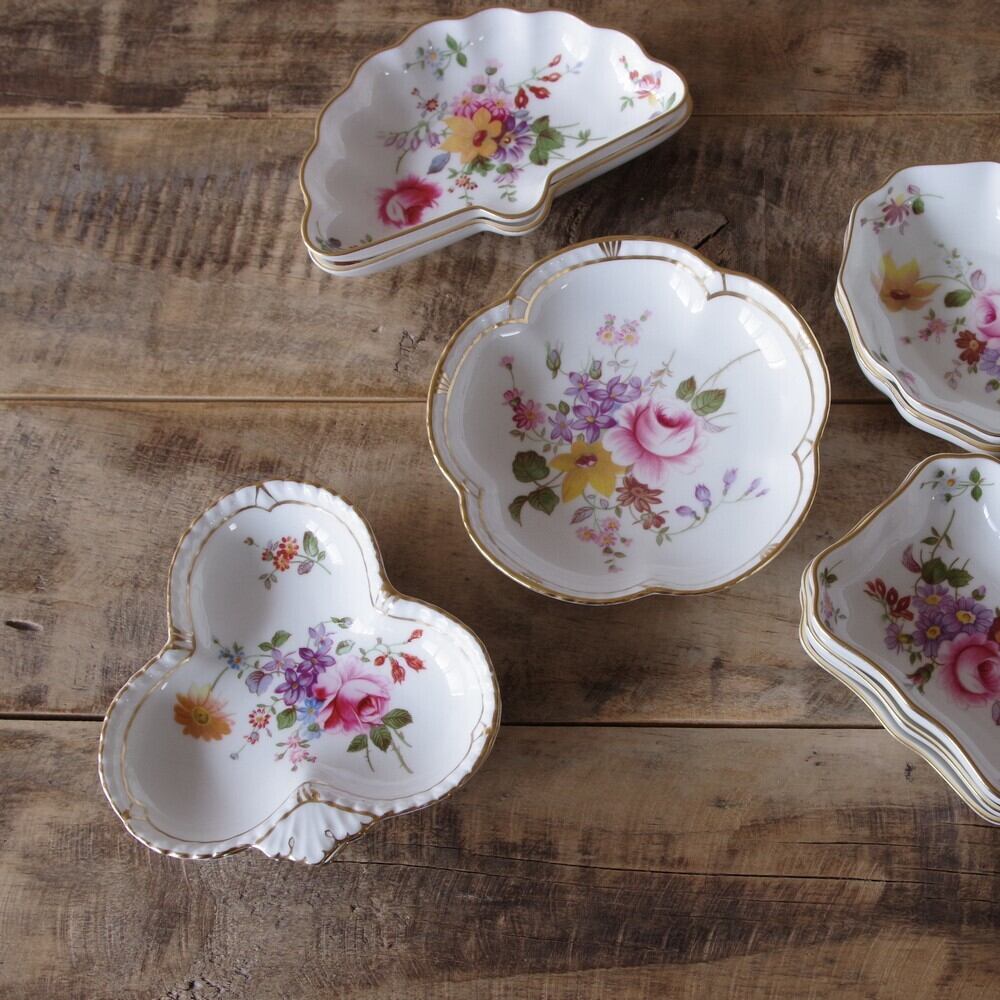 ロイヤルクラウンダービー ポウジーズ 花柄 トリンケットディッシュ 小皿 トレイ クローバー型 11cm #201108-12 Royal Crown Derby Posies ミニプレート 陶磁器 BONE CHINA