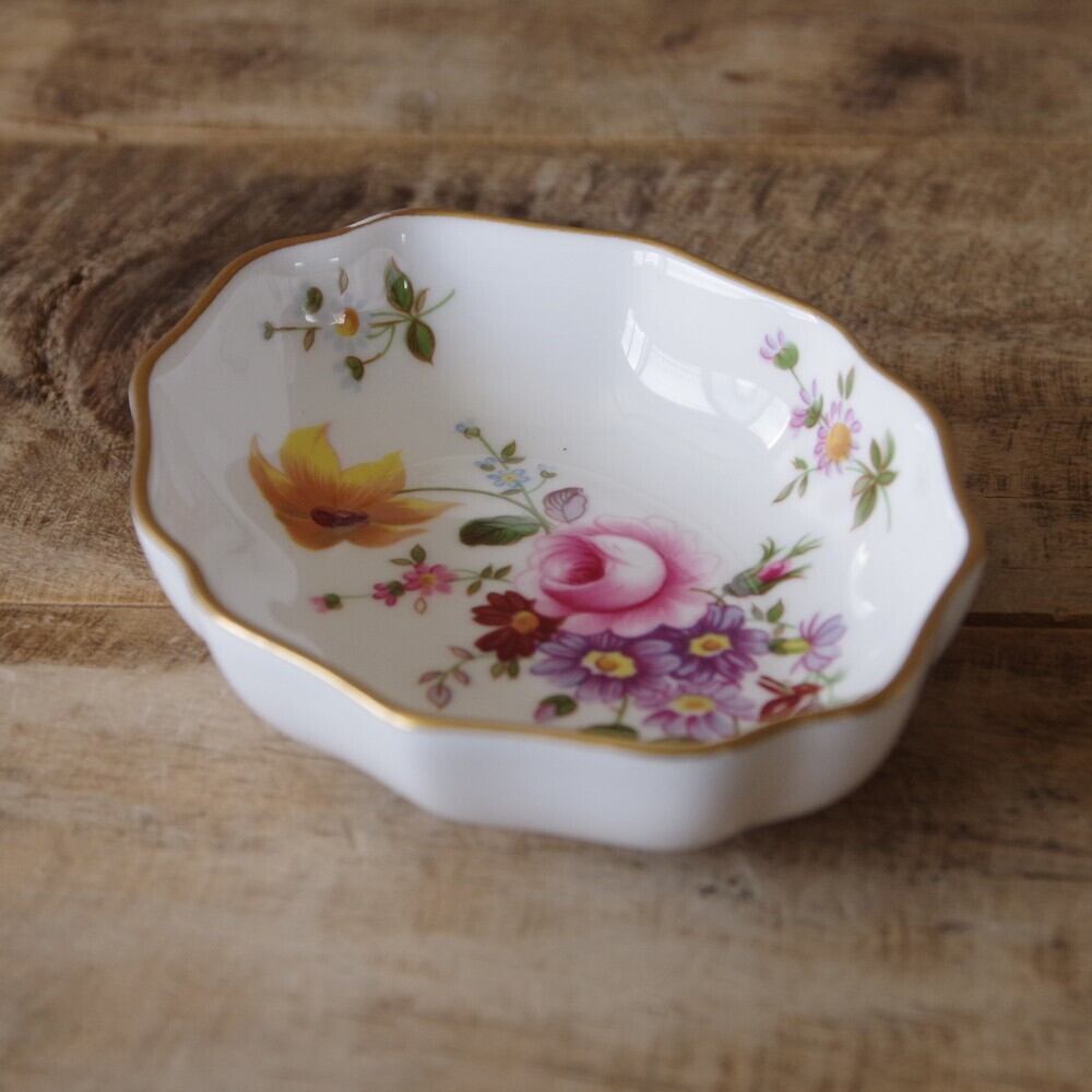 ロイヤルクラウンダービー ポウジーズ 花柄 トリンケットディッシュ 小皿 トレイ 10cm Royal Crown Derby Posies #201108-18 イギリス ヴィンテージ 陶器 ピンク 薔薇 レトロ シャビー