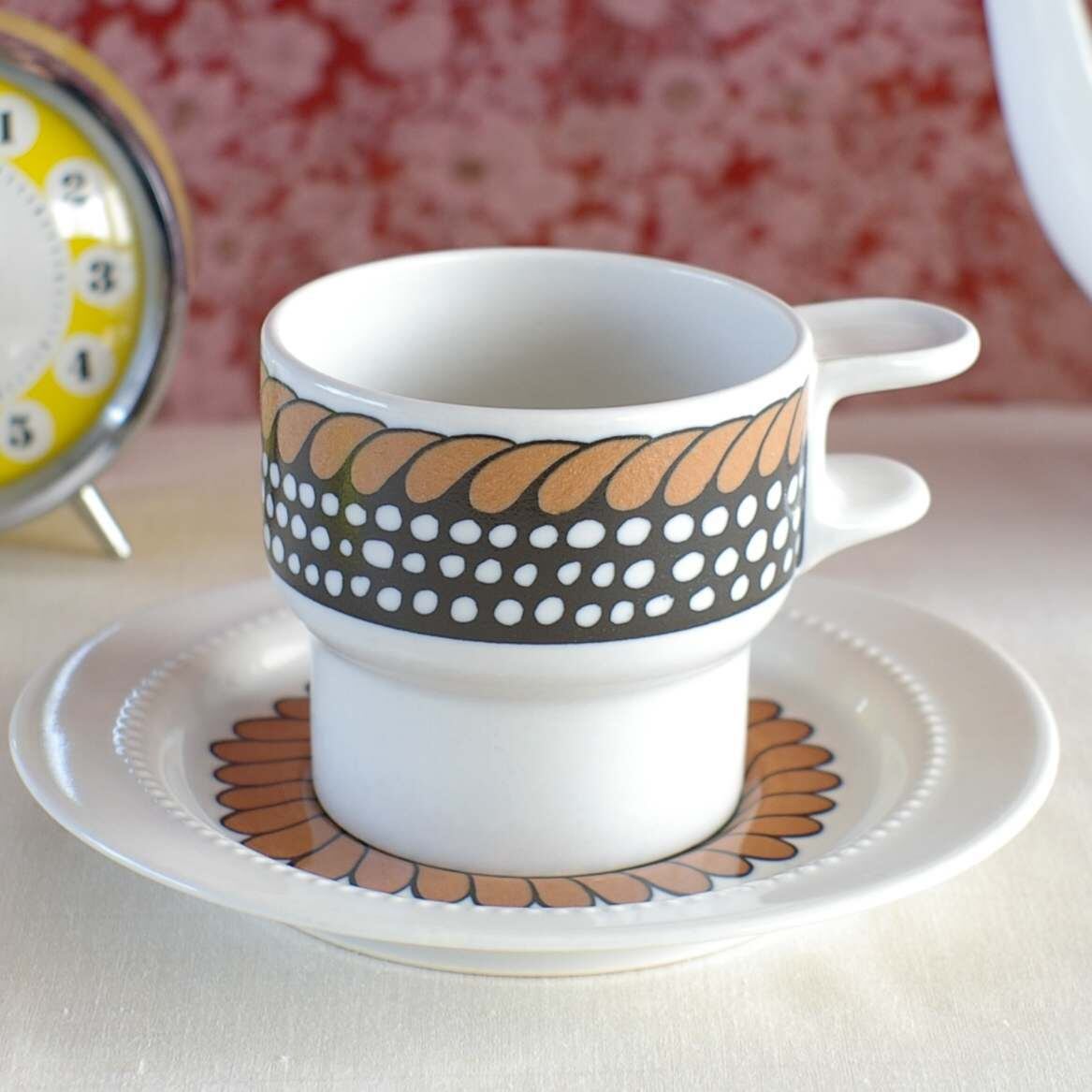 ドイツ製ローゼンタール レトロなブラウン花柄 コーヒーカップ&ソーサー Rosenthal Caldo Freddo Cup #160811-01~07 アンティーク ヴィンテージ 食器 陶器 ビンテージ