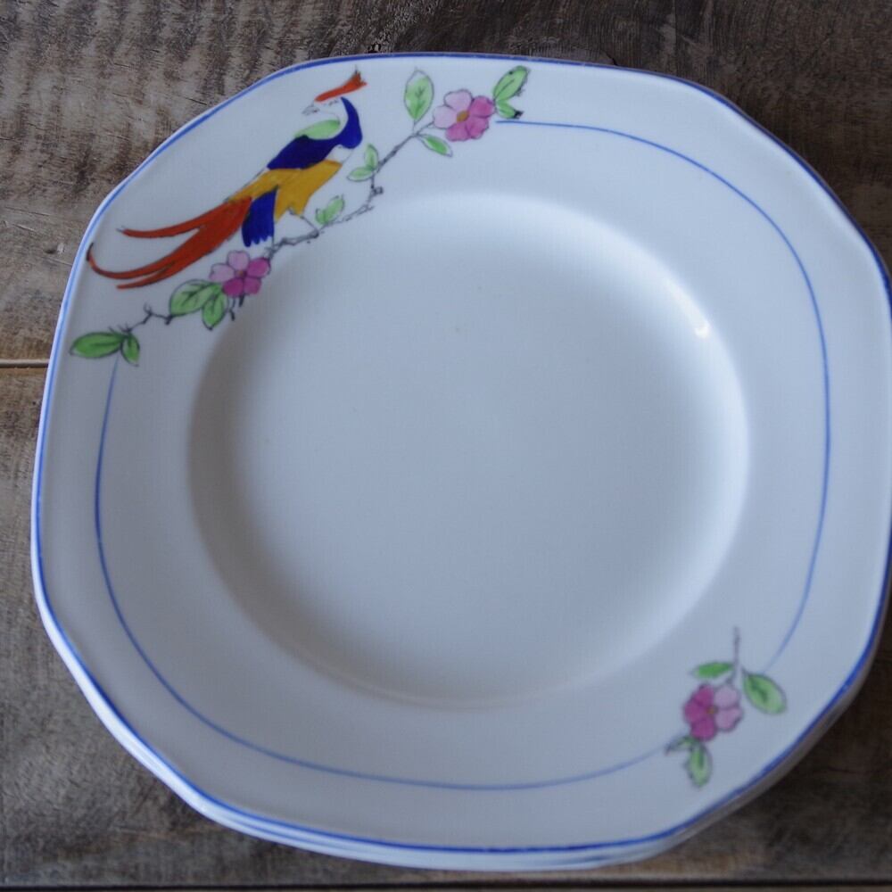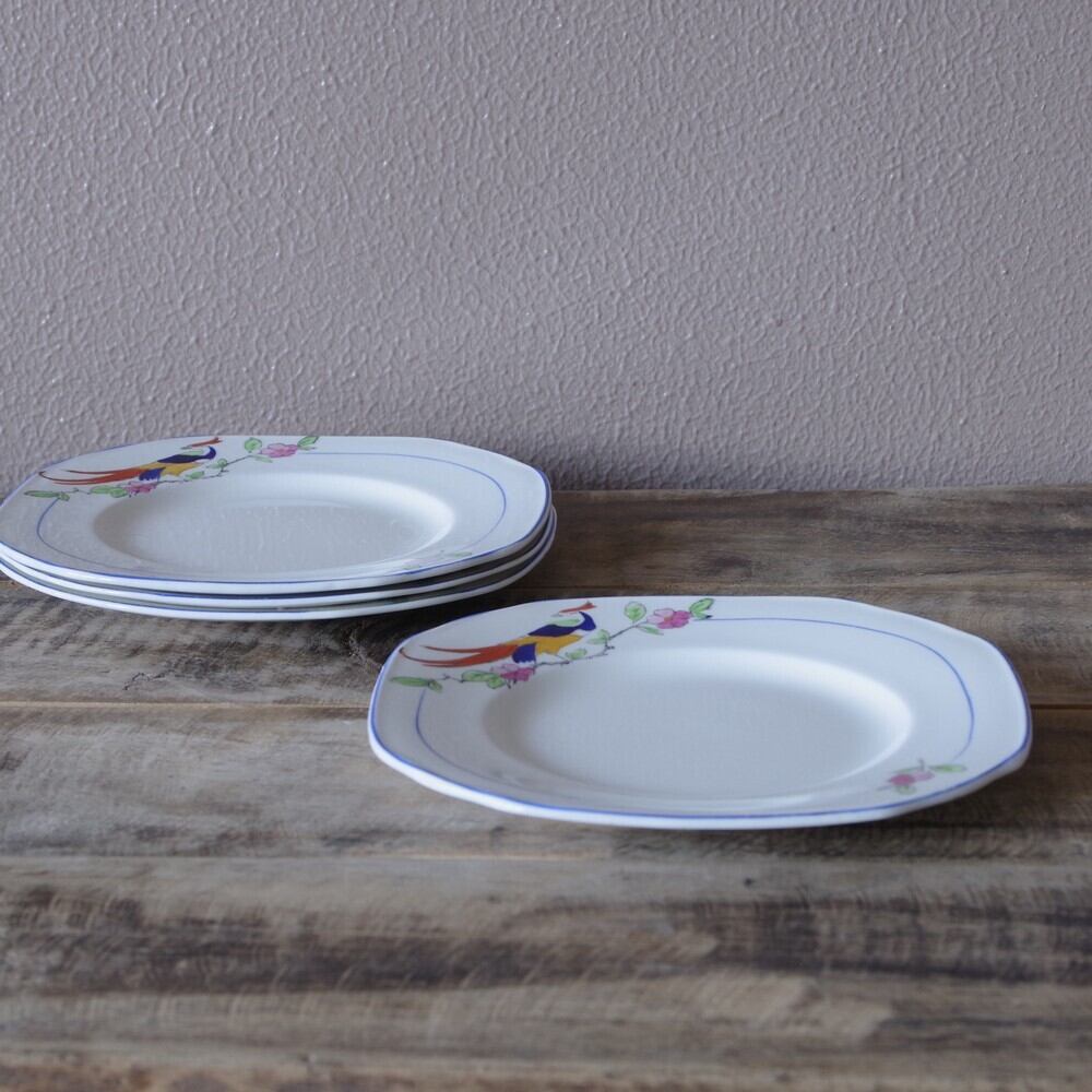 Grindley グリンドリー 鳥 花柄 デザートプレート ケーキ皿 角皿 15cm アールデコ #201113-1~4 イギリス ヴィンテージ アンティーク 食器 陶器 スクエア
