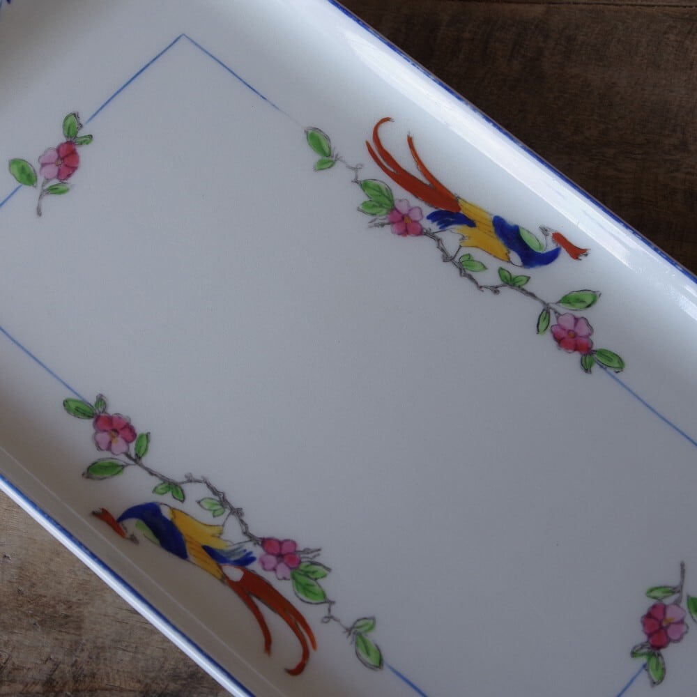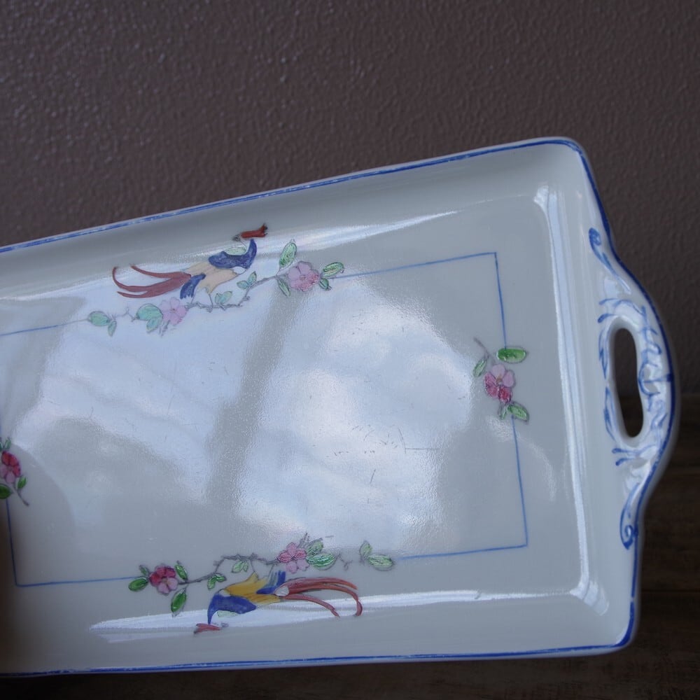 Grindley グリンドリー 鳥 花柄 プレート 長角皿 30cm アールデコ #201113 イギリス ヴィンテージ アンティーク 食器 陶器 レトロ