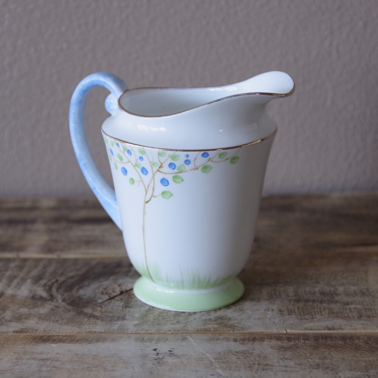 イギリス アンティーク 食器 陶器 雑貨 ロイヤルスタンダード グリーン ブルー ツリー柄 クリーマー #201113 Royal Standard レトロ ビンテージ ゴールド