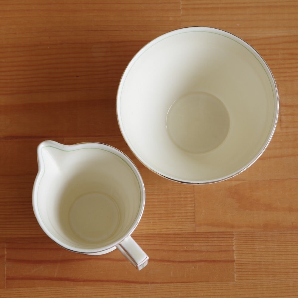Grindley グリンドリー アイボリー リーフ柄 シュガーボウル クリーマー アンティーク 食器 陶器 #201125 レトロ アールデコ 手描き ビンテージ