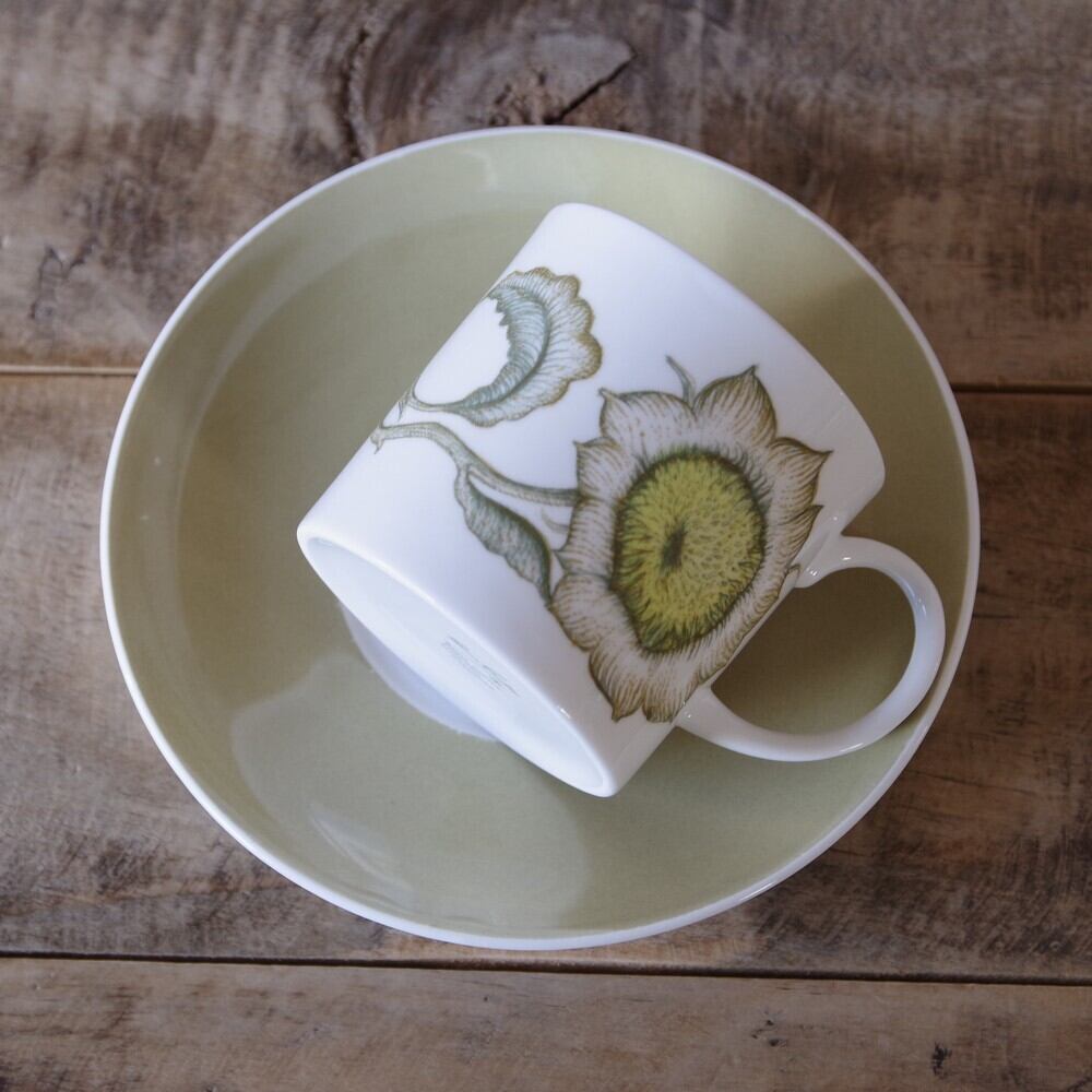 寸胴のカップに、レトロなひまわりの絵柄が大胆に描かれています。
