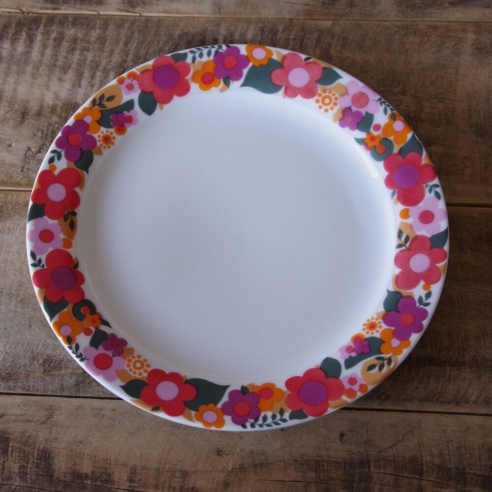 ドイツ製 ヴィンテージ 食器 Thomas トーマス Rotunda 赤 レトロ 花柄 デザートプレート 19cm ケーキ皿 #201201 ロトゥンダ 陶器 Rosenthal ローゼンタール
