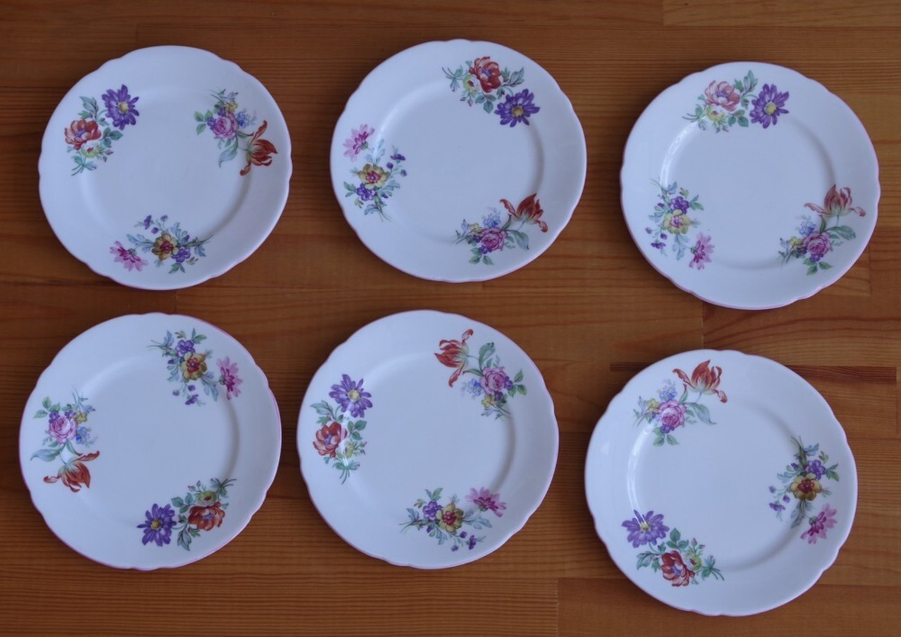 イギリス アンティーク 食器 シェリー ピンク 花柄 デザートプレート ケーキ皿 15cm Shelley #201204-1~6 ヴィンテージ レトロ チューリップ 薔薇 勿忘草 陶器