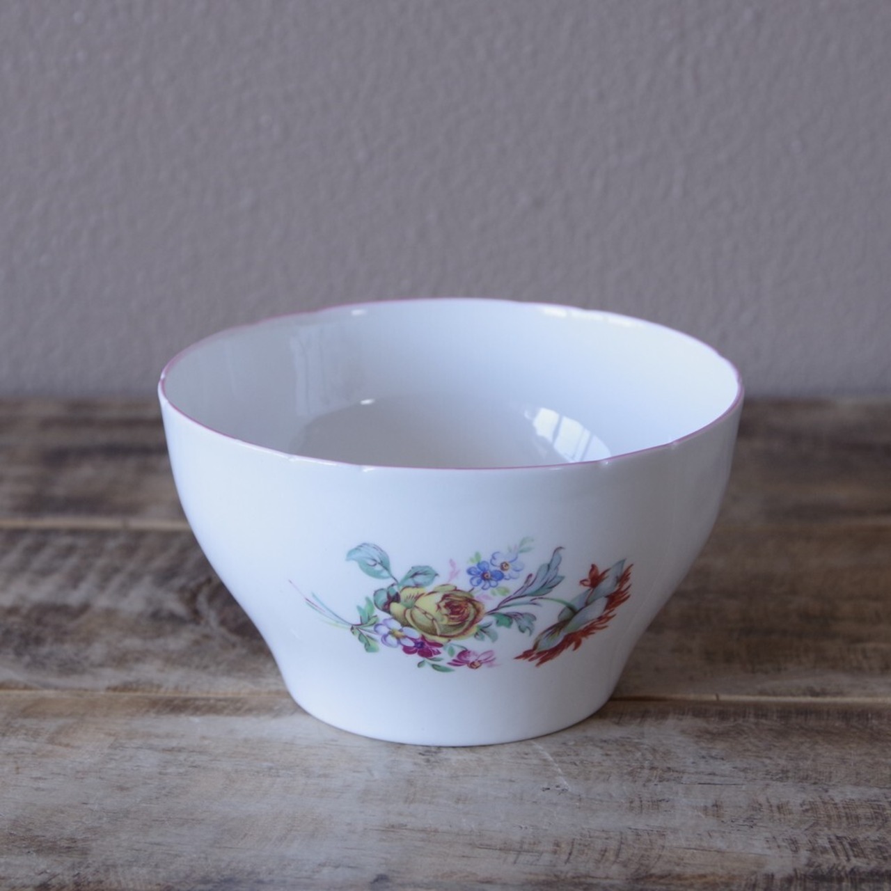 陶磁器製で、カラフルな花の絵柄が華やかに描かれています。