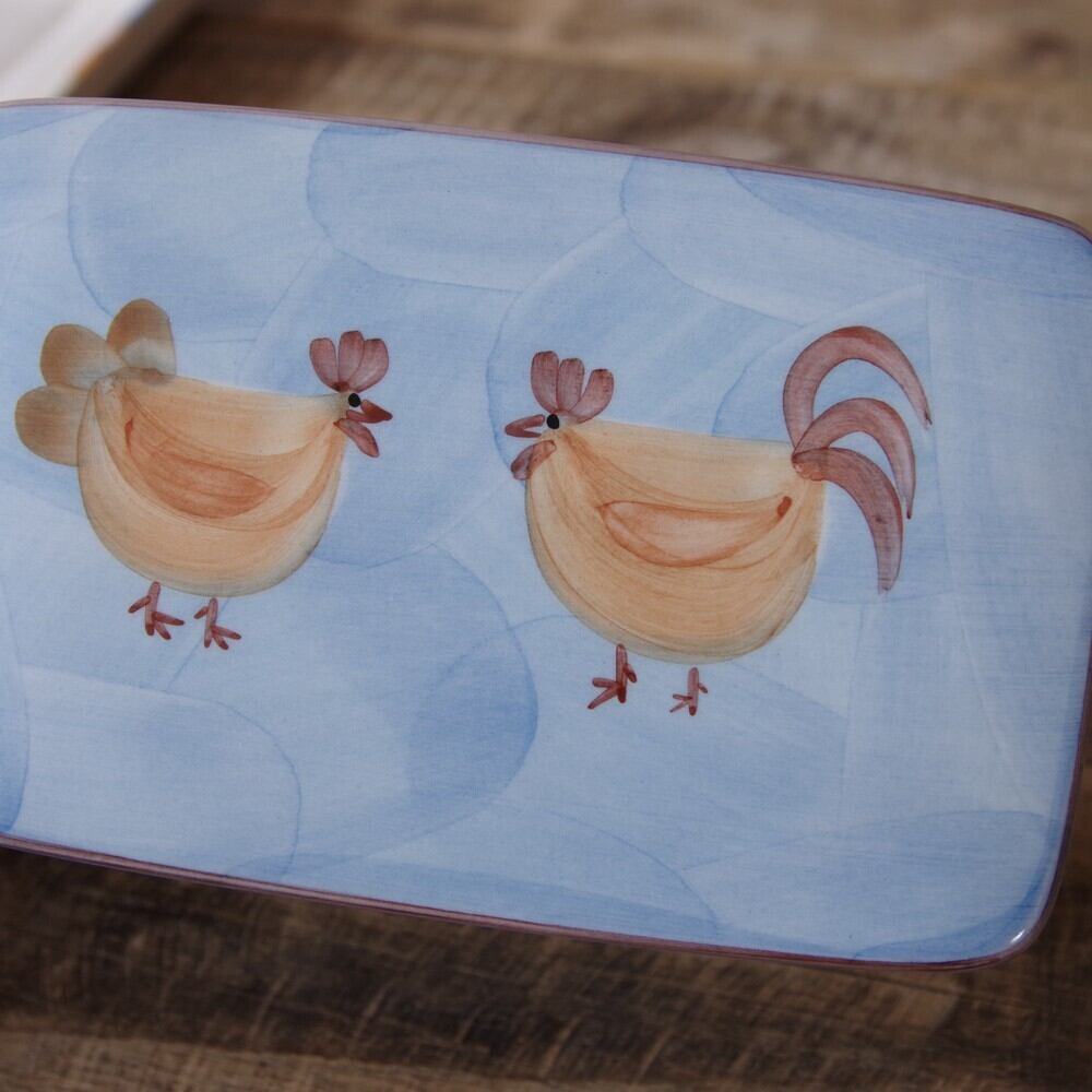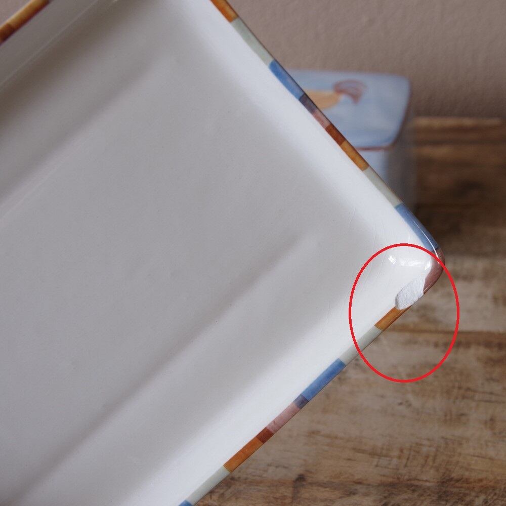 難あり Jersey Pottery ジャージーポッタリー にわとり柄 ブルー バターケース #201214 イギリス レトロ 手描き 鳥 ヴィンテージ 陶器 雑貨