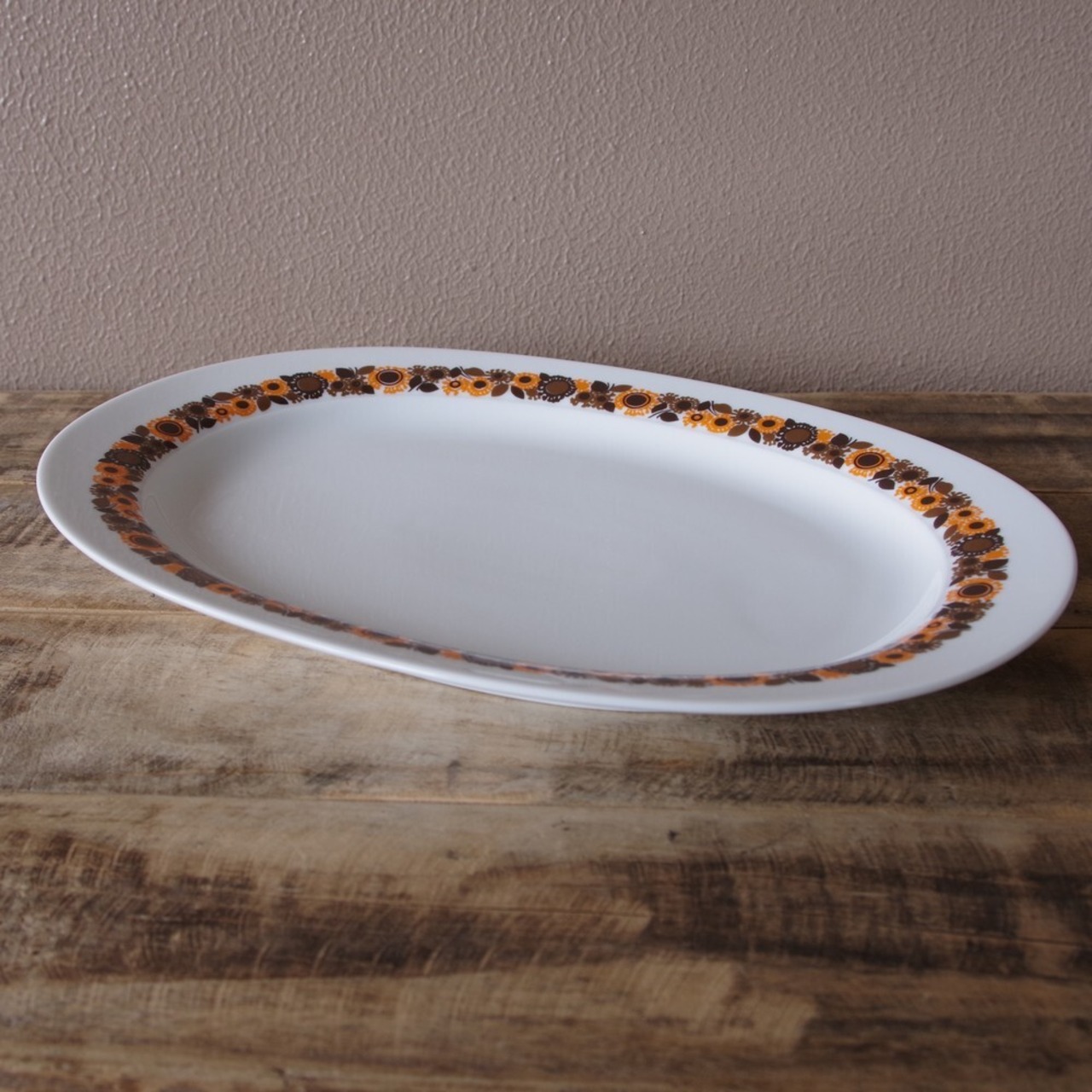 トーマス Thomas ブラウン オレンジ ひまわり 花柄 楕円 大皿 オーバルプラター 33cm Rotunda #201214 ドイツ ヴィンテージ 食器 レトロ 陶磁器 ローゼンタール