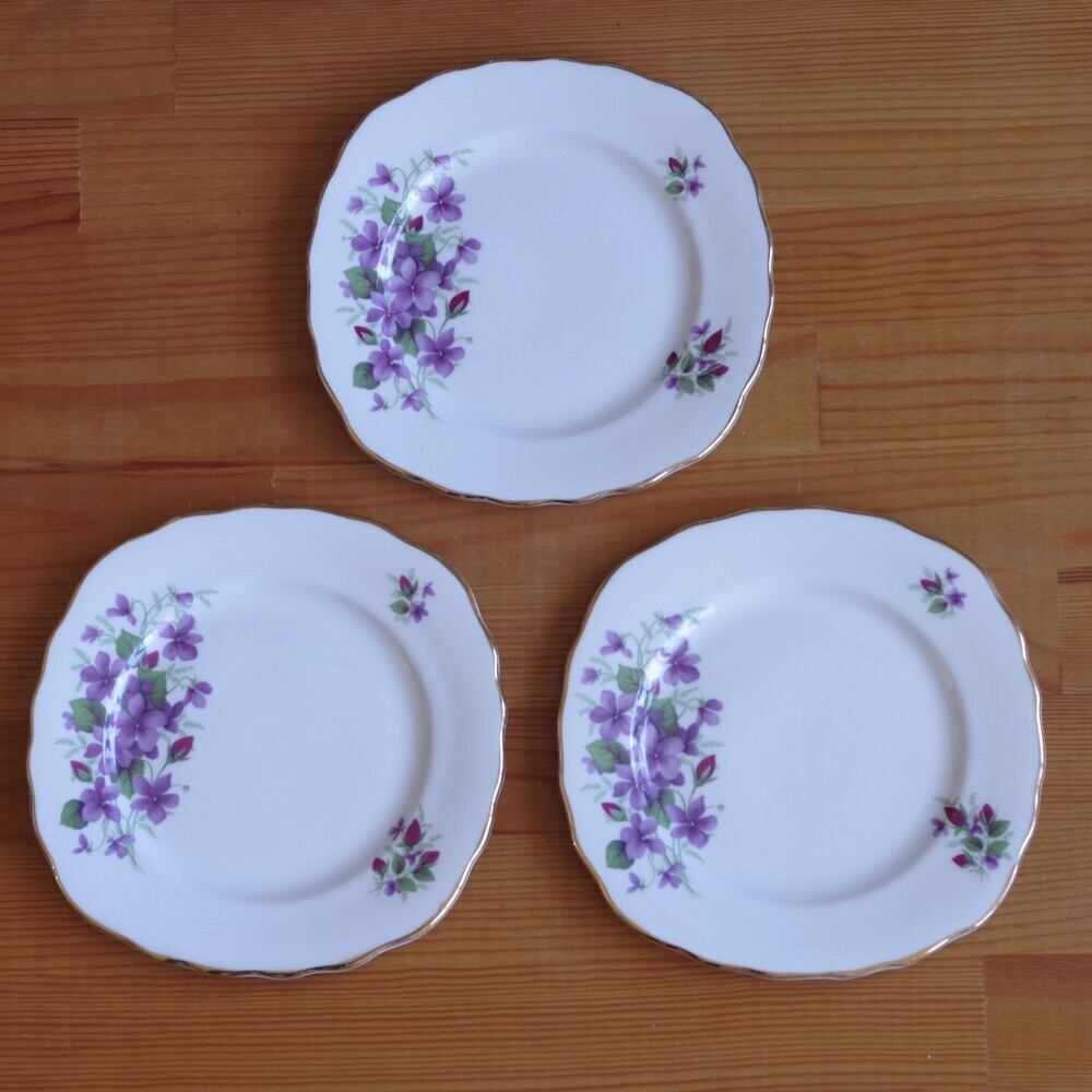 Colclough コルクラフ すみれ 花柄 デザートプレート レトロ ケーキ皿 #210121-1~3 イギリス ヴィンテージ アンティーク 食器 陶磁器 薔薇 ゴールド