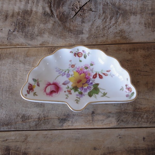 ロイヤルクラウンダービー ポウジーズ 花柄 トリンケットディッシュ 扇形 豆皿 Royal Crown Derby Posies #210121-28 イギリス ヴィンテージ アンティーク 雑貨 陶器 薔薇 ピンク