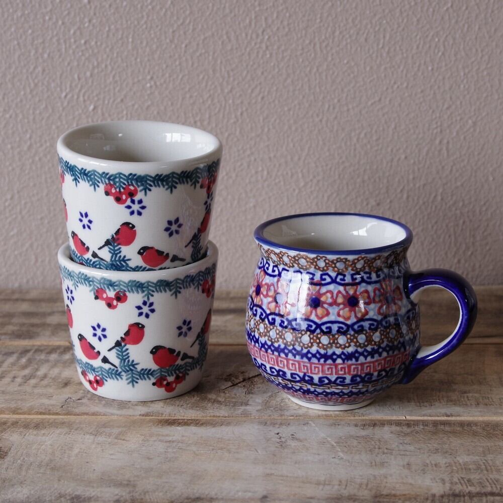 【再入荷】【新品】 ポーリッシュポタリー ポーランド 食器 フリーカップ 蕎麦猪口 ミニボウル 赤い小鳥と木の実 M128-GILE ボレスワヴィエツ 陶器 Boleslawiec 東欧 雑貨