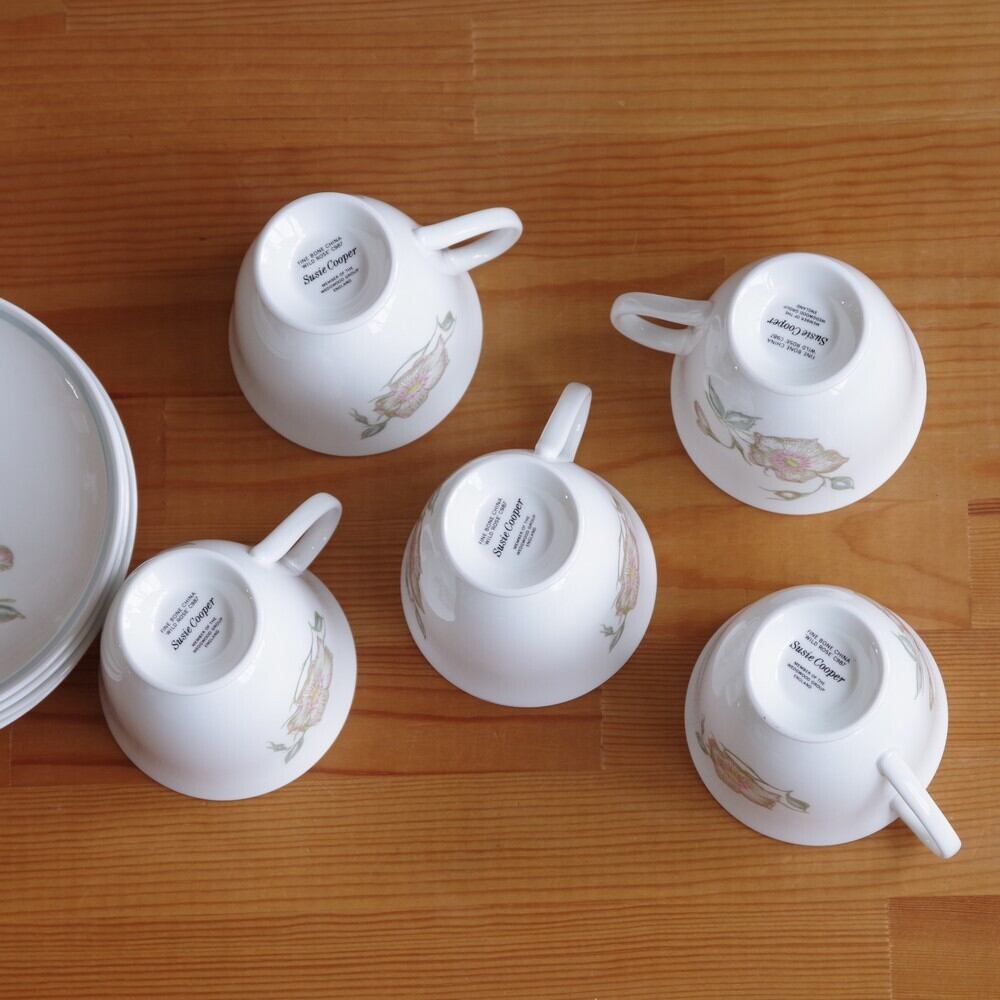 ヴィンテージ 食器 スージークーパー ワイルドローズ 野ばら 花柄 コーヒーカップ ソーサー #210206-1~5 アンティーク ウェッジウッド BONE CHINA Wild Rose 陶器