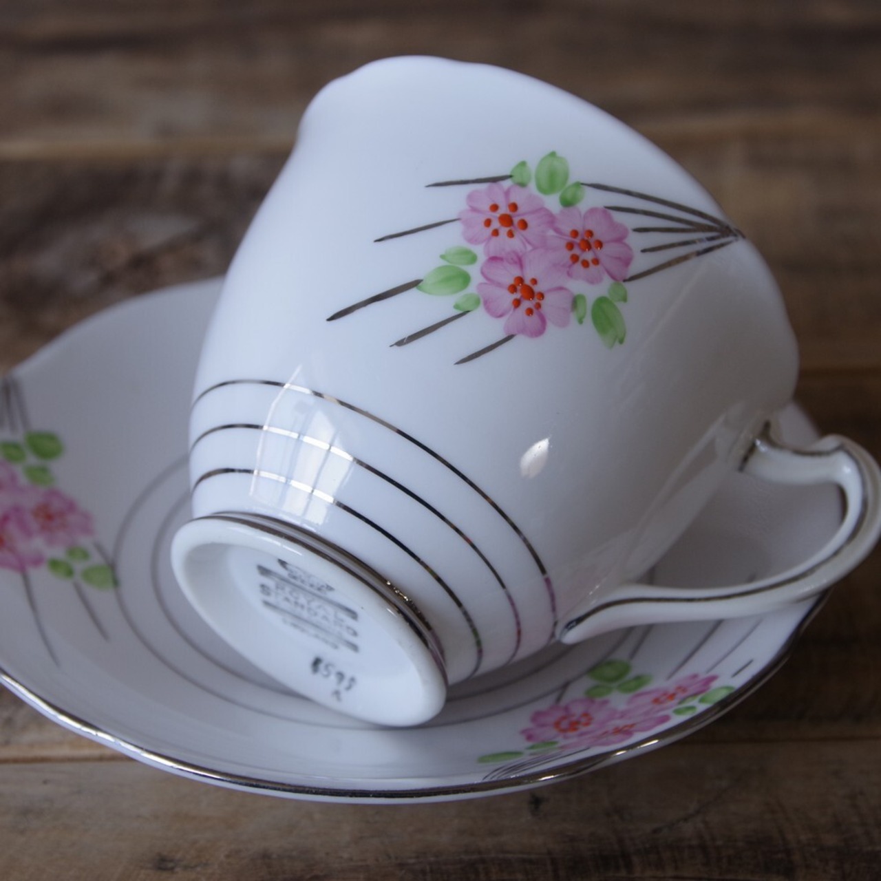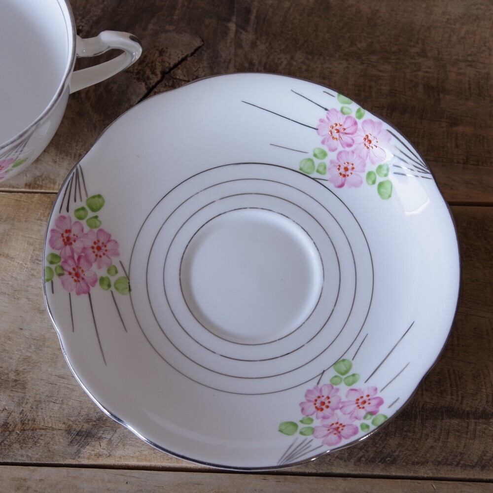 ロイヤルスタンダード ピンク 花柄 コーヒーカップ ソーサー Royal Standard #210211-1 イギリス 食器 アンティーク ヴィンテージ 陶器 レトロ