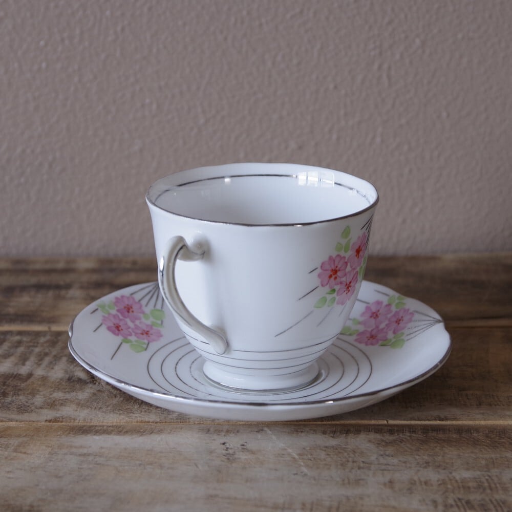ロイヤルスタンダード ピンク 花柄 コーヒーカップ ソーサー Royal Standard #210211-2 イギリス 食器 アンティーク ヴィンテージ 陶器 レトロ