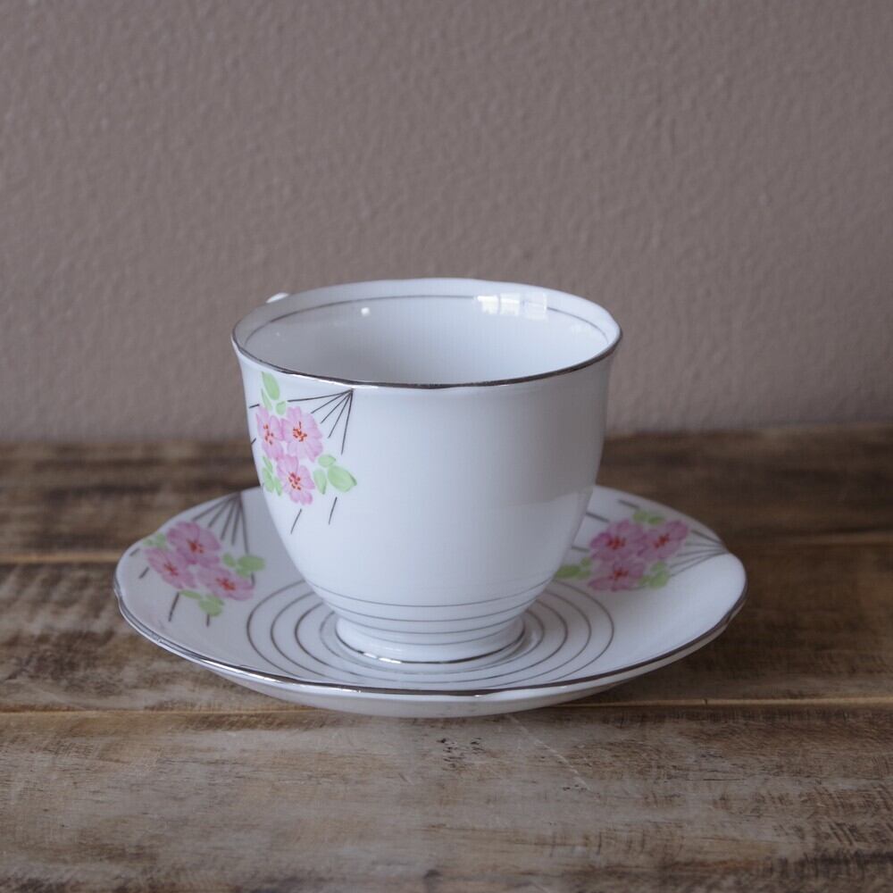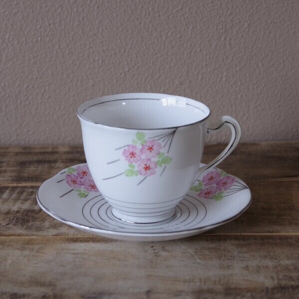 ロイヤルスタンダード ピンク 花柄 コーヒーカップ ソーサー Royal Standard #210211-3 イギリス 食器 アンティーク ヴィンテージ 陶器 レトロ