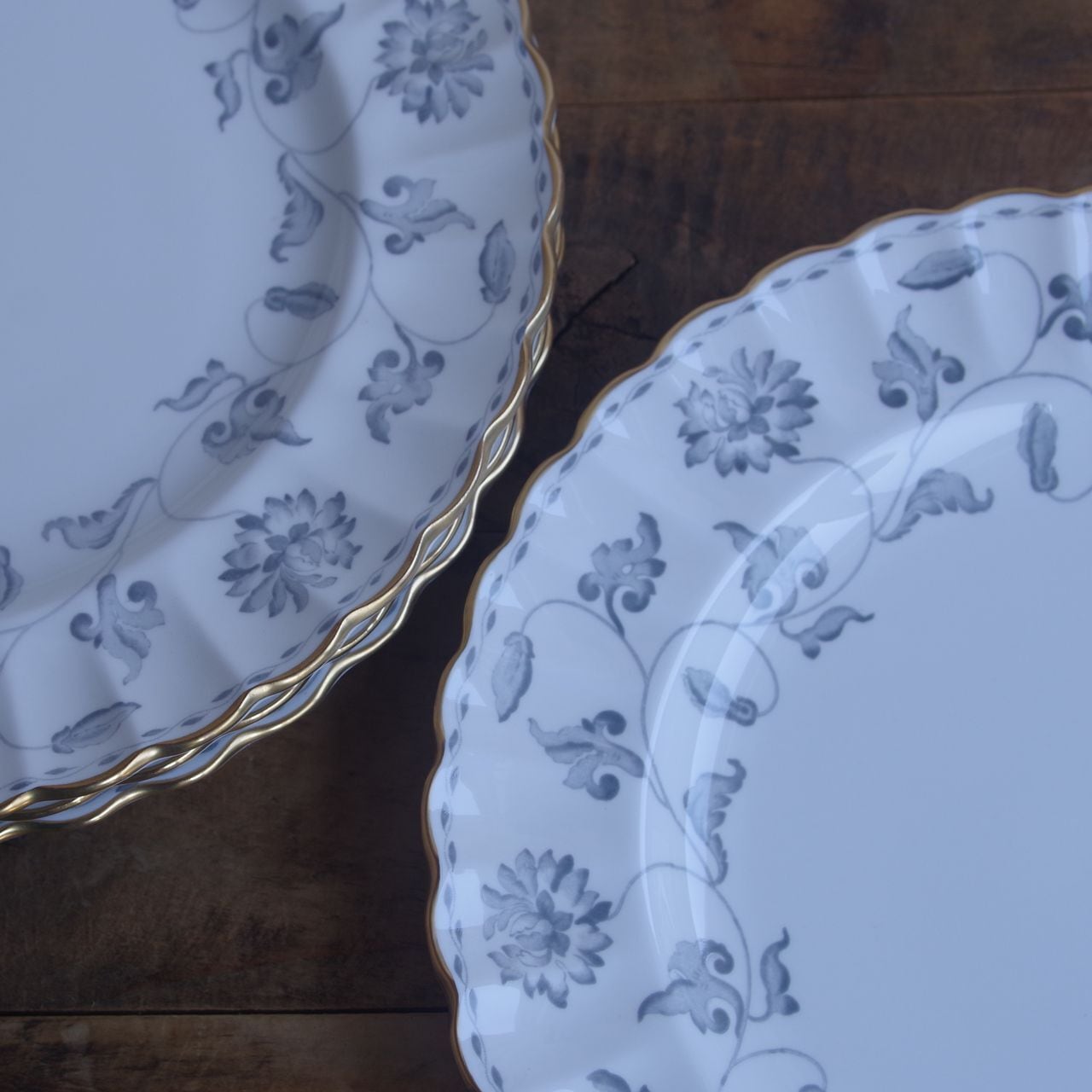 スポード カーネル ディナープレート 大皿 27cm Spode Colonel グレー 菊 花柄 #251106-1~4 イギリス ヴィンテージ アンティーク 食器 陶器 ゴールド おしゃれ ランチプレート