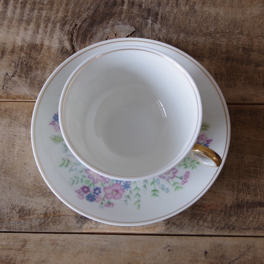 フランス アンティーク 食器 リモージュ アビランド カラフル 花柄 金彩 ティーカップ ソーサー Rock Garden #210219-1~4 Limoges Haviland France ゴールド 陶器 レトロ